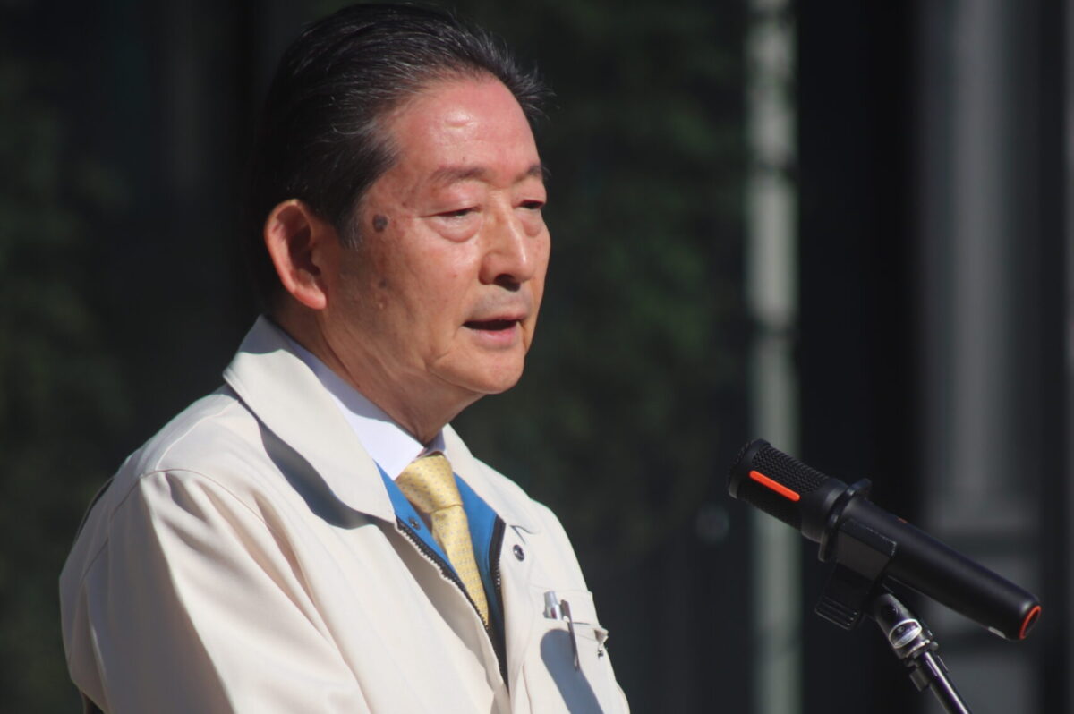 Mr. Katsuhiro Osajima, President of Senmi Ekisu, giving a pre-anniversary speech
